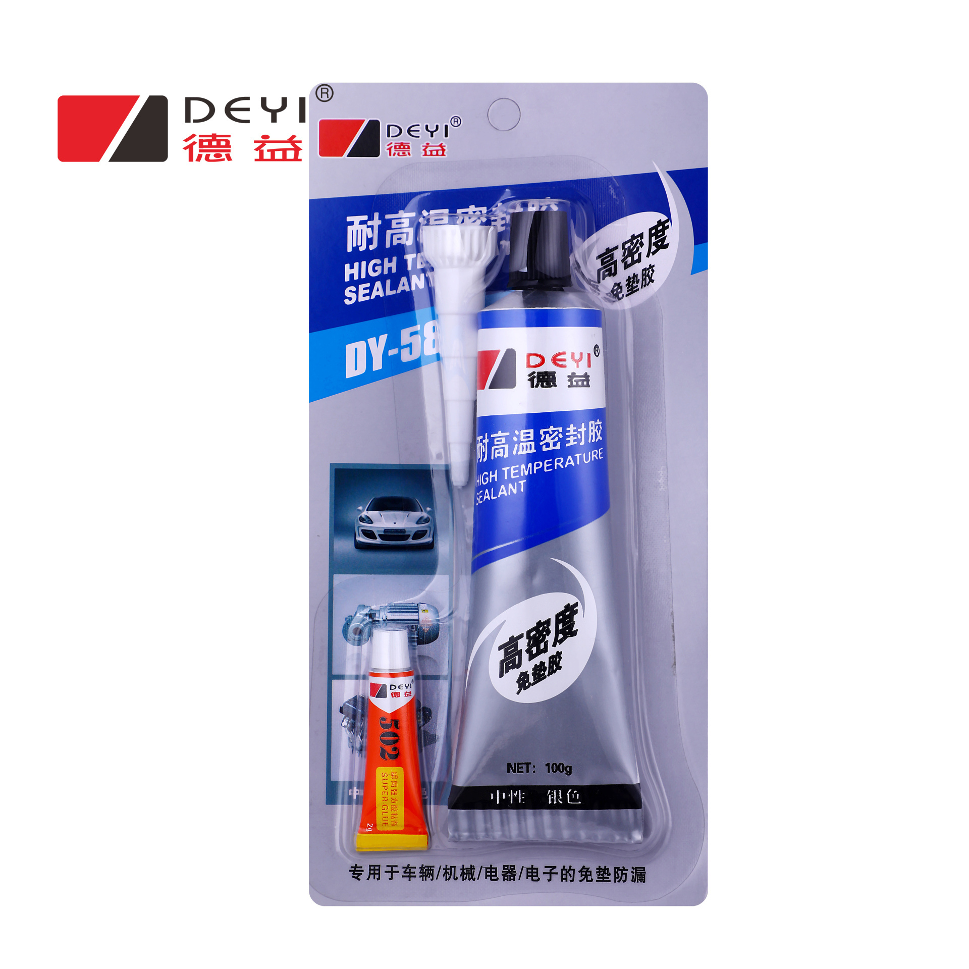 德益牌DY- M583硅硐密封胶,密封强度良好,耐高温效果好,颜色与发动机缸体接近,时尚美观。可代替各种橡胶垫、石棉垫、软木垫和纸垫,能有效防止水、油、气渗漏,具有良好的密封防漏效果。